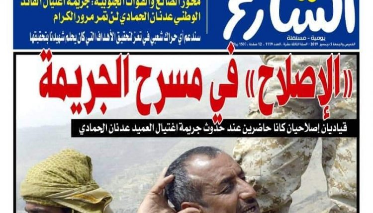 صحيفة الشارع | حزب الاصلاح متورط في جريمة اغتيال الحمادي