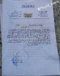 خاطبت إدارة أمن مديرية جبل حبشي، الأربعاء، إدارة شرطة تعز بسرعة إلزام اللواء 17 مشاة جبلي تسليم افراده المتهمين في حادثة قتل العامل، عزالدين عوض ناجي، من ابناء جبل حبشي للتحقيق واستكمال الإجراءات القانونية وتوجيه الجهات المختصة في البحث لمعاينة جثة الضحية المتواجدة في مستشفى العسكري.