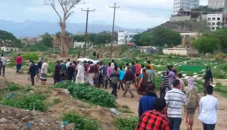 تعز | عشرات المواطنين يشيعون أول حالة وفاة بفيروس كورونا ونشطاء يستنكرون غياب السلطات