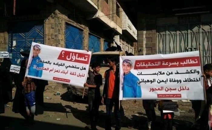 واستدعت قيادة المحور أسرة الوهباني لتسلم جثمان ابنها، نهاية ديسمبر الماضي بعد شهر من اختطافه بشكل سري وخارج عن القانون وتعذيبه حتى الموت لكن الأسرة رفضت حينها دفن رفات ابنها قبل معرفة ملابسات وتفاصيل الجريمة ومعاقبة الجناة.