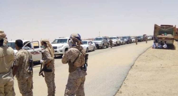 وتابع الشريف” الأشخاص اعترضوا على مسألة الحجز على حسابهم، فقاموا بقطع طريق العبر احتجاجا على ذلك منذ التاسعة صباح اليوم وحتى الخامسة مساءً، مطالبين بجوازات سفرهم وكروت سياراتهم المحتجزة لدى قيادة كتيبة الحماية، فما كان من الكتيبة إلا اعادتها لهم وغادروا من فورهم، متوجهين إلى محافظات شبوة ومأرب والجوف”.