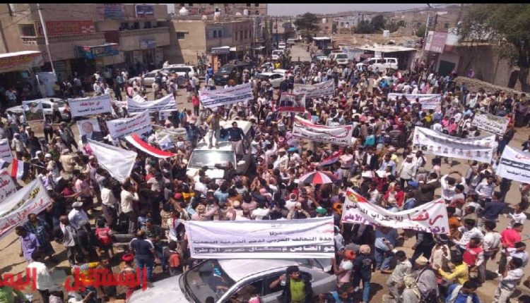 التربة| مظاهرة شعبية لمئات المحتشدين من الحجرية والساحل الغربي