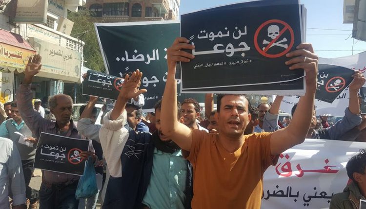 احتجاجات واسعة في تعز تنديدا بانهيار سعر العملة