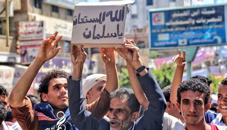 وطالب المحتشدون حكومة الشرعية والتحالف بقيادة السعودية بسرعة معالجة الوضع الاقتصادي وانهيار العملة الوطنية .