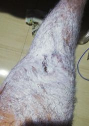 بسبب إهمال سلطات الشرعية..أحد جرحى تعز في الهند يحرق ساقه