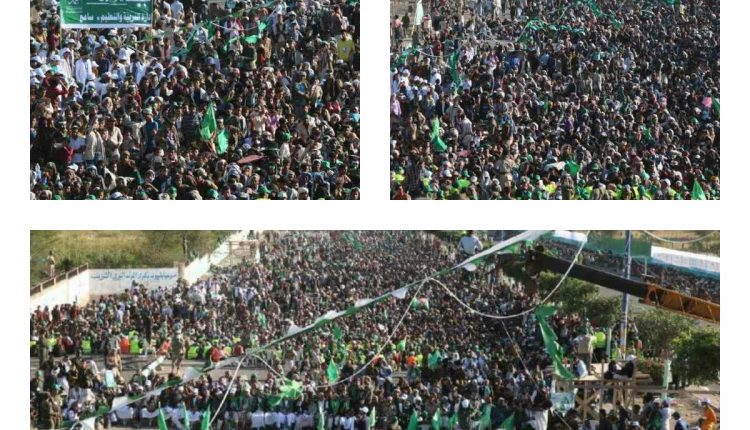 خرج الالاف من أبناء محافظة تعز، اليوم الخميس، لأحياء مناسبة المولد النبوي الشريف تلبية لدعوة التي وجهتها سلطة صنعاء” الحوثيين” وزعيمها عبد الملك الحوثي