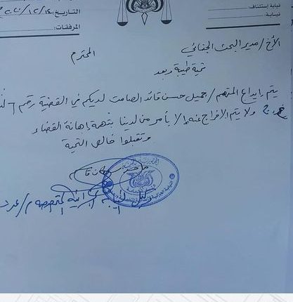 وأمرت النيابة بعدم الإفراج على الصامت بحجة إهانة القضاء حسب التوجيه الصادر من وكيلها ماجد سلطان قاسم.
