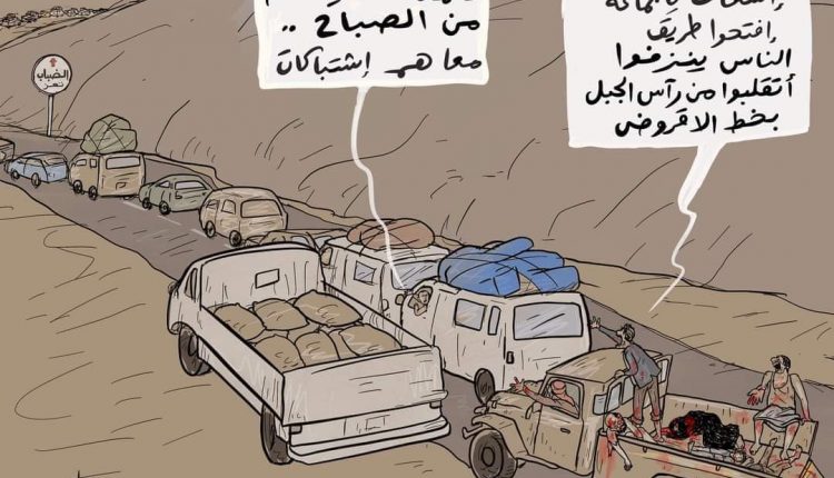 كاريكاتير ..اغلاق طريق تعز – عدن أمام المسافرين