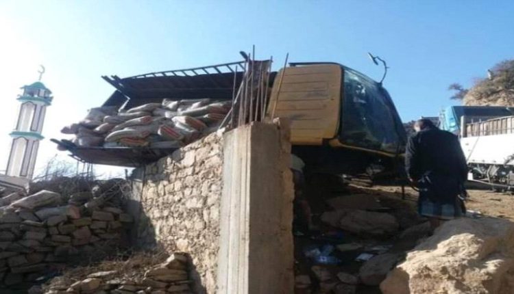 وقال مصدر محلي ان إن تدهور حالة الطريق وتحميل الشاحنة فوق سعتها الطبيعية تسبب بانقلابها، فيما نجا سائق الشاحنة من موت مُحقق.