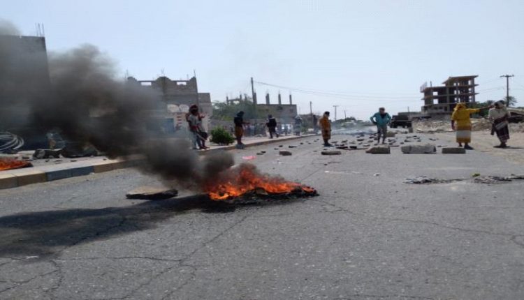 وقام عشرات من الشباب المحتجون صباح الأحد على قطع الطريق العام الرابط بين لحج – تعز، بعد أن قاموا بحرق الإطارات ورمي الاحجار وسط الطريق ما أدى إلى توقف شبه كامل للشاحنات والسيارات بشكل كامل.