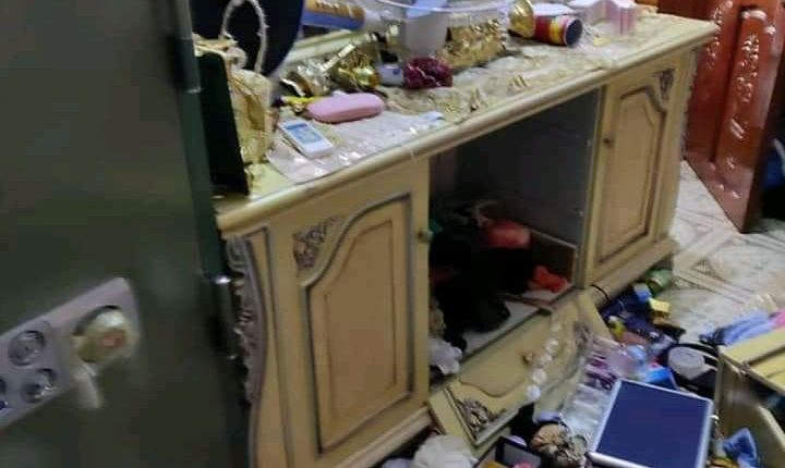 وتظهر الصور المتداولة، خزانة الملابس الشخصية الخاصة لأسرة الشيخ الخرج، التي تم اقتحامها في وقت سابق يوم أمس.