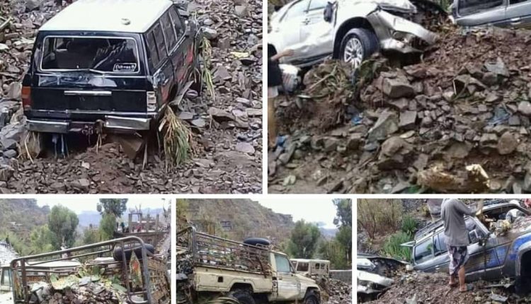 تعز..سيول الأمطار تجرف سيارات مواطنين وتغلق طريق الأقروض