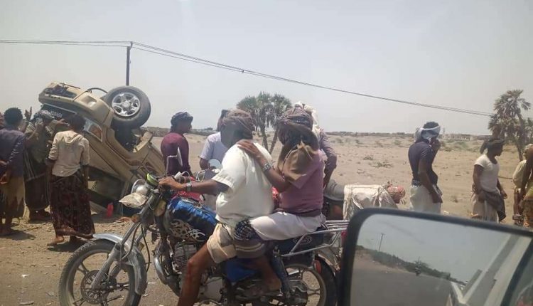 وقال مصدر محلي ان طقم عسكري مُسرع تابع لمعسكر ابو موسى الاشعري في مدينة الخوخة اصطدم بسيارة نوع باص (نوها) بالقرب من المستشفى الميداني في الخط العام ، وتسبب بوفاة شخص وإصابة جميع المواطنين الذين كانوا على متن الباص من ضمنهم نساء وأطفال.