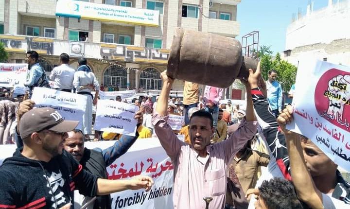 وشهدت مدينة تعز، اليوم الخميس، مظاهرة حاشدة مطالبة بإسقاط ومحاسبة السلطة المحلية والعسكرية والأمنية الفاسدة وتوفير الخدمات وضبط الأمن ومنددة بسياسات التجويع وانهيار العملة.