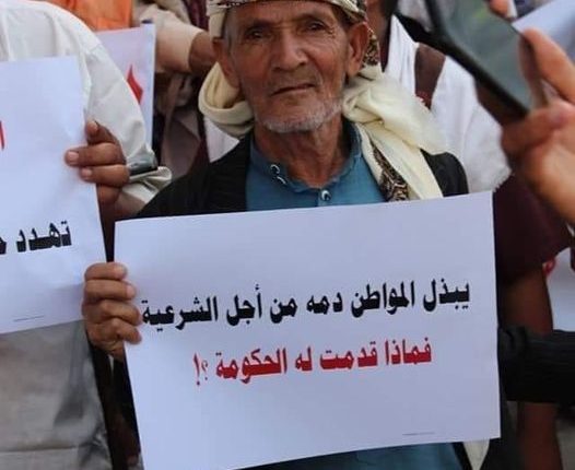 تصاعد السخط الشعبي في تعز ضد سلطة وحكومة الشرعية في ظل ارتفاع الأسعار وانهيار العملة وغياب الخدمات والفساد المستشري في مكاتب وقطاعات الدولة.