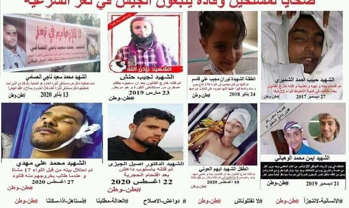 وأضاف معددا عدد من قضايا الرأي العام التي لم يتم انصافها في مدينة تعز ” فمتى ستصحوا ضمائرهم ويتم القصاص من قتلة الشهداء: حبيب الشميري، نجيب حنش ، د.اصيل الجبزي ، محمد علي مهدي، ايمن الوهباني ، محمد سعيد ناجي، الطفل ايهم العوني، الطفله نوران مجيب“.