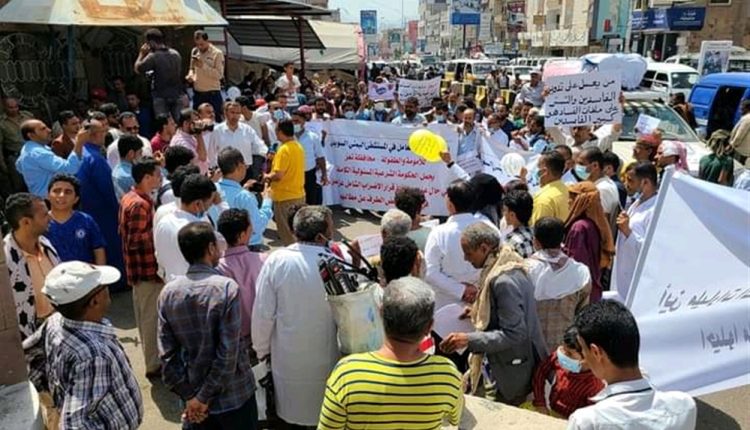 أثار ذلك غضب الكادر الطبّي والتمريضي في المستشفى، فنظّموا وقفات ومسيرات احتجاجية، نددوا فيها بتدهور هذا المرفق، والوضع الذي آل إليه، وتوقف خدماته، كما استنكروا تجاهل السلطة المحلية، ومكتب الصحة العامة والسكان في المحافظة، وهددوا بالتصعيد في حال استمر ذلك ولم تتم الاستجابة لمطالبهم.