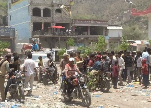 شهد مركز مديرية المعافر بمحافظة تعز ، الاثنين ،مظاهرة حاشدة تنديدا بالوضع الاقتصادي وانهيار العملة.