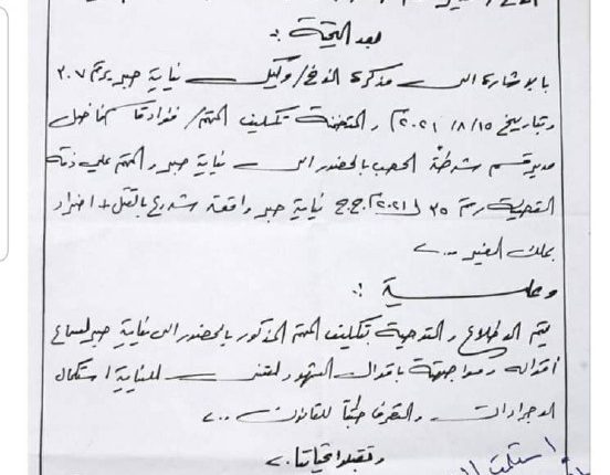 يأتي ذلك تعقيبا على المذكر الصادرة من نيابة صبر بعد عجزها عن احضار المتهم فاضل للتحقيق معه في القضية الجنائية الجسيمة رقم 35 لسنة 2021.