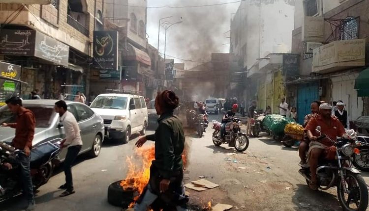 إضراب وقطع للشوارع ومسيرات..تعز تنتفض ضد سياسة التجويع