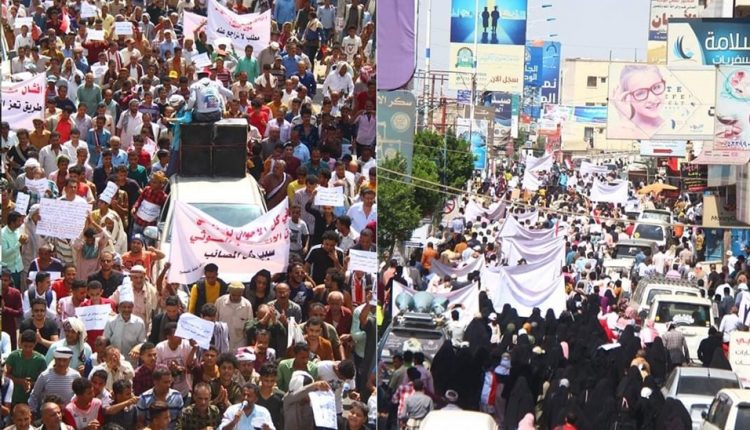 وحمل المشاركون في التظاهرة  التي وصلت إلى أمام مقر السلطة المحلية، حكومة الشرعية والتحالف مسؤولية تدهور الاقتصاد وانهيار أسعار صرف العملة وصعوبة الأوضاع الاقتصادية التي يعيشها اليمنين.