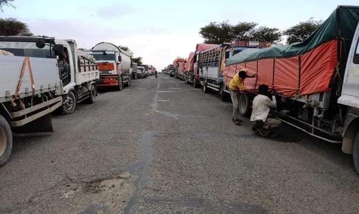 الصورة لإضراب سائقي الشاحنات.