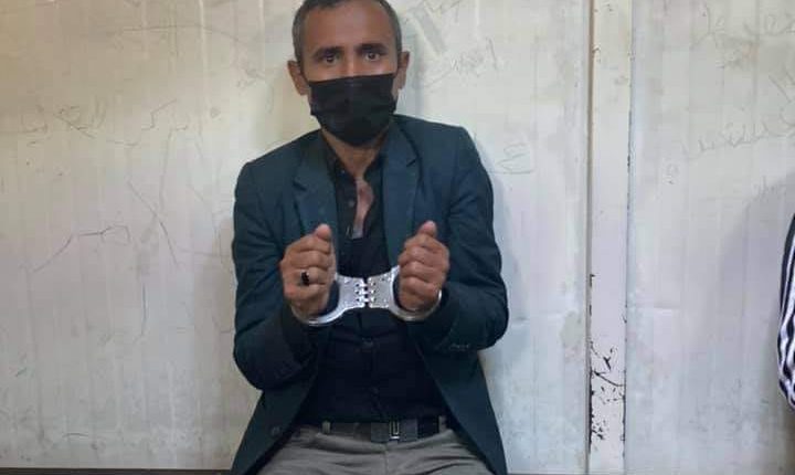 وظهر الصحفي رداد السلامي وعلى يديه “كلباش الاعتقال”، واحتجازه بعد رفع دعوة عليه من قبل السفير اليمني في عمان “علي العمراني”.