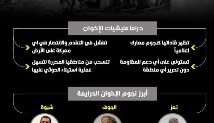 ونشر موقع “نيوز يمن”، الذي يديره السكرتير الإعلامي لطارق صالح، نبيل الصوفي، انفوجرافك ضم المخلافي وقياديان للحزب في كل من الجوف وشبوة، تحت عنوان عريض ” نجوم معارك الدراما الإخوانية”.
