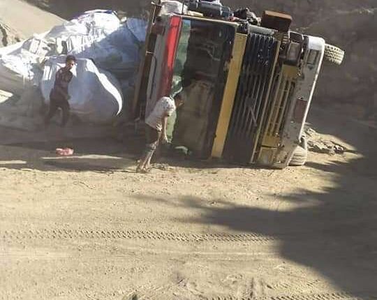 وقال مواطنون أن ناقلة شحن (قاطرة) على متنها مواد استهلاكية، انقلبت في طريق “مكيحل” في منطقة عريم اليوسفيين في مديرية القبيحة شمالي لحج .