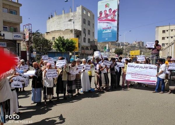 نفذ أهالي منطقة الجشاش بمدينة تعز ،وقفة احتجاجية ،للتنديد بسياسة الإقصاء والتهميش التي تمارسها السلطات المحلية في المحافظة.