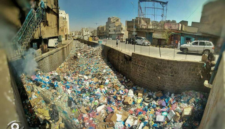 شاهد.. النفايات تغرق مدينة تعز مع حلول شهر رمضان المبارك