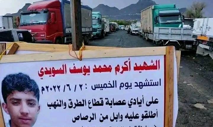 ويواصل سائقي الشاحنات التجارية لليوم الثالث على التوالي، اضرابهم الشامل عن العمل احتجاجاً على الجبايات غير القانونية التي تفرضها المجاميع والنقاط العسكرية وعمليات التقطع التي يتعرضون لها من قبل مسلحين في الطريق العام بمحافظة لحج، والتي كان أخرها مقتل الطفل أكرم العزعزي أمام والده، بعد التقطع لهما نهاية الأسبوع الماضي.