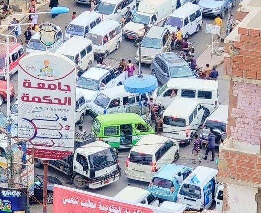 ازدحام مروري في شوارع تعز (صورة)