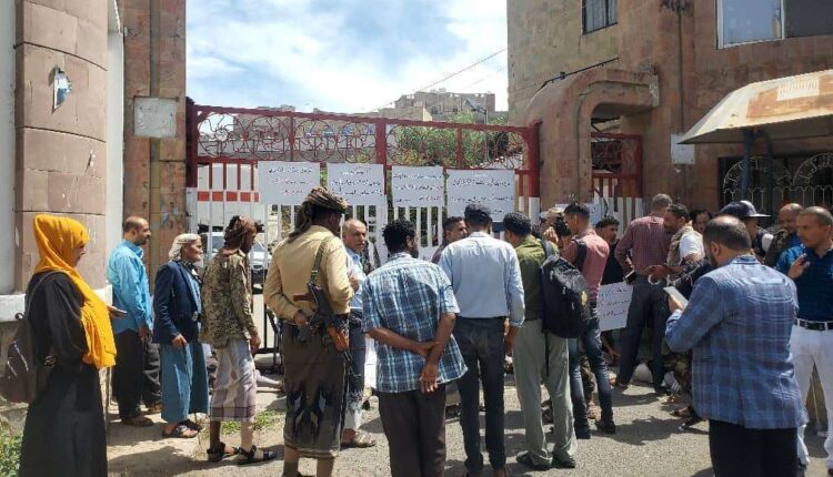 منعوا الموظفين من ممارسة أعمالهم وحاصروا شمسان..جرحى محور تعز يغلقون مبنى المحافظة