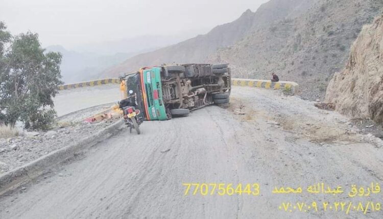 وهذا الحادث الثاني بظرف ساعة بهيجة العبد عقب انقلاب شاحنة بالمنحدر.