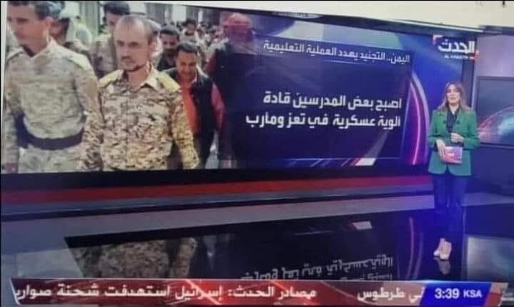 وبثت قناة “الحدث” التابعة للسعودية عرضا بانوراميا عن ما سمته جيش المعلمين في اليمن بالإشارة إلى القيادات التابعة للإصلاح التي تبوأت مناصب ورتب عسكرية في جيش الشرعية.
