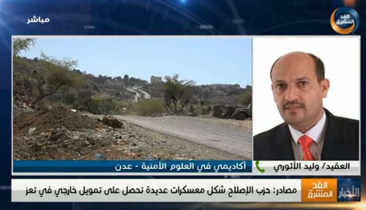قال الأكاديمي في العلوم الأمنية، العقيد وليد الأثوري إن “حزب الإصلاح في تعز يجند الشباب خارج إطار مؤسسات الدولة ويستخدمهم لخدمة مصالحه السياسية”.
