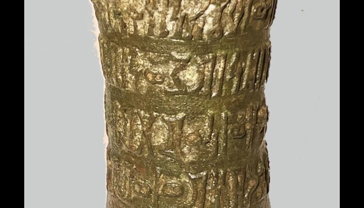 وأضاف ” دورق أو كأس برونزي بارتفاع 13.1 سم وقطر قاعدة 7.5 سم من آثار اليمن ، من القرنين الرابع والثالث قبل الميلاد، تبرز على سطحه الجميل أربعة أسطر من حروف المسند اليمني، ونوه أنه لم يتمكن من الحصول على صور كاملة لمحيطه لتحديد كامل النقش”.
