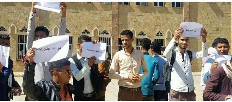 وقفة احتجاجية لطلاب كلية العلوم الطبية بكلية التربة جامعة تعز