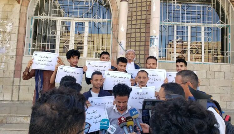 وقفة احتجاجية للمطالبة باستئناف العمل بمشروع طريق التربة – تعز