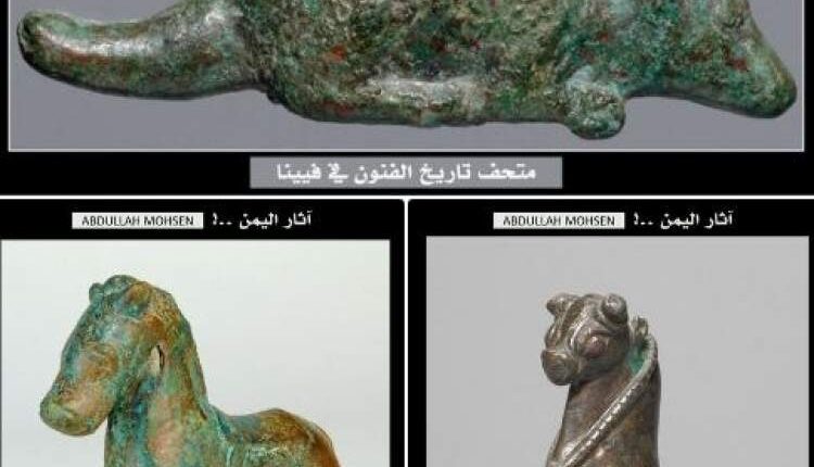 وقال الباحث محسن، في تدوينه له على مواقع التواصل الاجتماعي، إن “متحف في النمسا قام بعرض ثلاث تحف يمنية نادرة، وهي تمثال فأر، وحصان من القرن الأول قبل الميلاد، إضافة إلى تمثال بروتومات ثور.