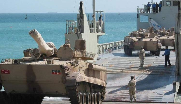وقالت المصادر، إن عشرات من الجنود الإماراتيين بالإضافة إلى دبابات ومدرعات وأسلحة متطورة وعتاد عسكري واجهزة اتصالات، وصولوا على متن سفينة شحن عسكرية إماراتية إلى قاعدة عسكرية للإمارات في الجزرية.