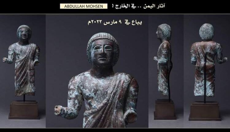 وقال الباحث محسن إنه تم بيع تمثال برونزي لرجل قيادي في عصر سبأ في مزاد أرتيمس في الولايات المتحدة، الخميس الماضي.