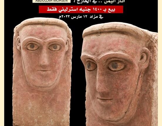 وكان محسن قد كشف في وقت سابق، أنه سيتم بيع التمثال في مزاد “أبو لو” الشهير، قائلا: في 12 من مارس 2023م في مزاد أبولو الشهير يعرض للبيع بثمن بخس شاهد جنائزي يمني من القرن الثاني قبل الميلاد ، من الحجر الجيري “مذهل ذو وجه تجريدي منحوت بشكل بارز مع أنف مثلث ، وعيون بيضاوية عميقة ، وفم صغير ، وحاجب بارز وحواجب جيدة المظهر ، واقتراح بتاج أو غطاء للرأس.