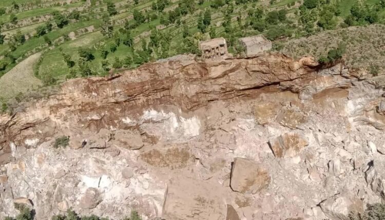 انهيار جبل في ريف تعز تسبب بتدمير منازل