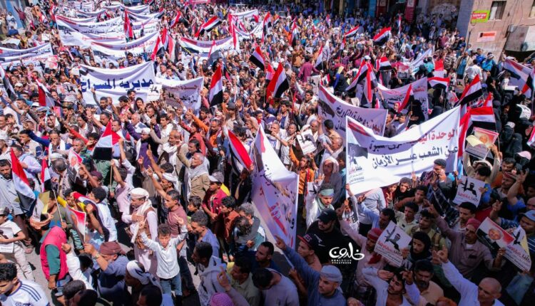 يأتي ذلك بالتزامن مع خروج الآلاف من من أبناء تعز في مسيرة جماهيرية دعت لها قيادات إصلاحية مناهضة للمجلس الانتقالي .