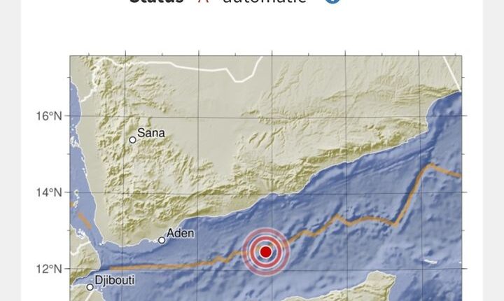 USGS : زلزال يضرب خليج عدن بقوة 5.9 درجة