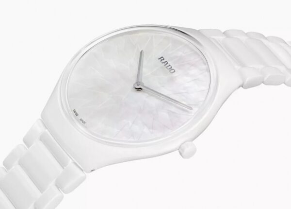 وقالت رادو، في موقعها الرسمي، إن ساعتها الجديدة (Chapter 9) مصنوعة من السيراميك عالي التقنية باللون الأبيض، وبهندسة معمارية دقيقة من اللؤلؤ الأبيض.