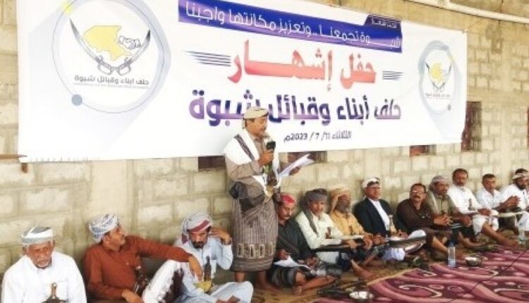 على غرار مجلس حضرموت الوطني، أعلن مشايخ وشخصيات اجتماعية في شبوة اليوم الثلاثاء، عن تشكيلهم مجلس “حلف أبناء وقبائل شبوة”، في خطوة رفضتها السلطات المحلية المحسوبة على المجلس الانتقالي الجنوبي المدعوم إماراتيا.