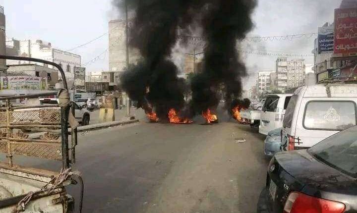 وقطع محتجون في عدن والمكلا ولحج عدد من الشوارع الرئسية وقاموا باغلاق المحلات واحراق الاطارات واطلاق هتافات منددة بالحكومة التي طالبوها بالتدخل العاجل لانقاذ الوضع الاقتصادي والخدمي.